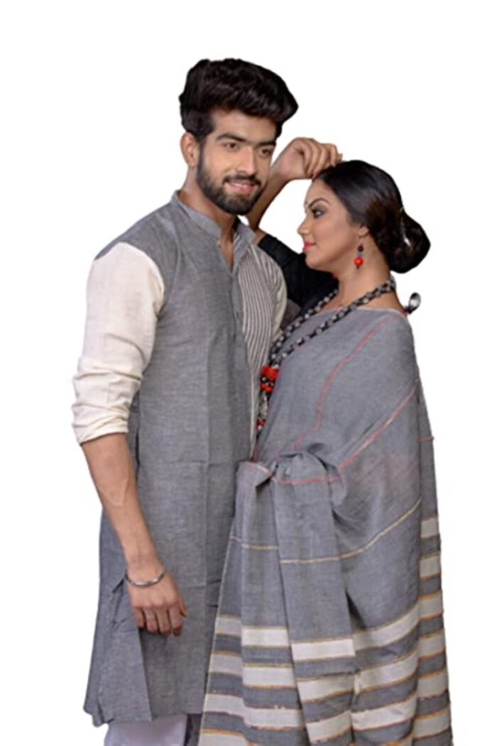 - INCLUDES: This package includes Bengali handloom pure khadi cotton saree and kurta for men (one saree+one kurta)