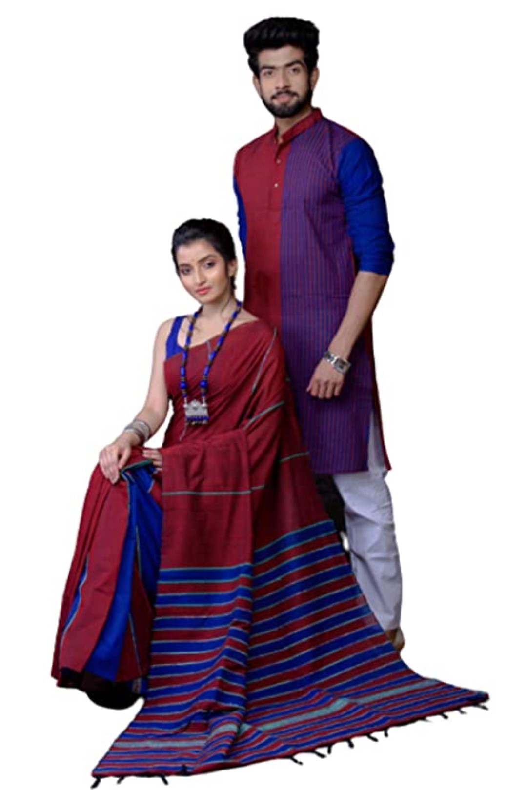 - INCLUDES: This package includes Bengali handloom pure khadi cotton saree and kurta for men (one saree+one kurta)