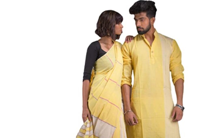 - INCLUDES: This package includes Bengali handloom pure khadi cotton saree and kurta for men (one saree+one kurta)