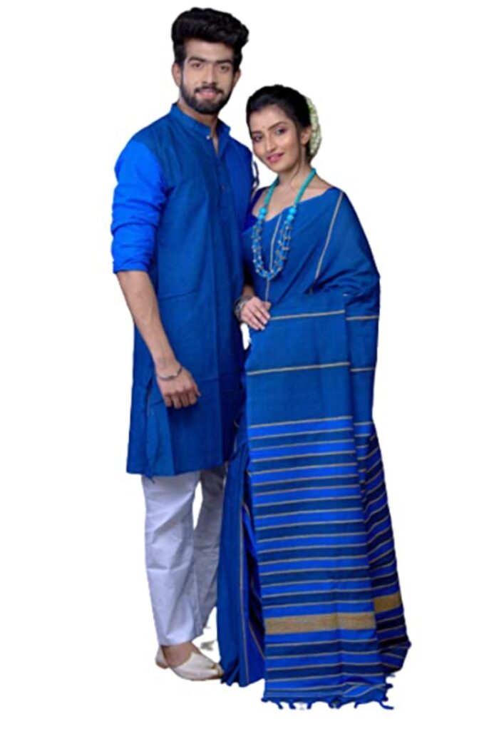 • INCLUDES: This package includes Bengali handloom pure khadi cotton saree and kurta for men (one saree+one kurta)