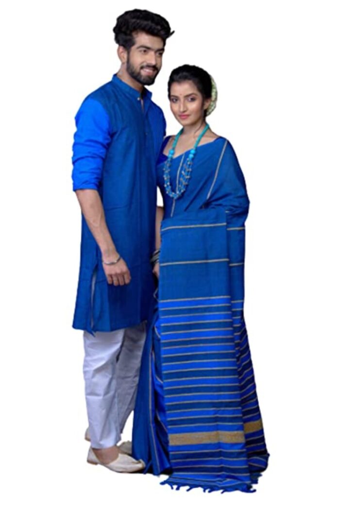 • Saree-Kurta /bengali punjabi Couple set is a brain child of MAHI FAB and is produced with utmost care and sincerity.