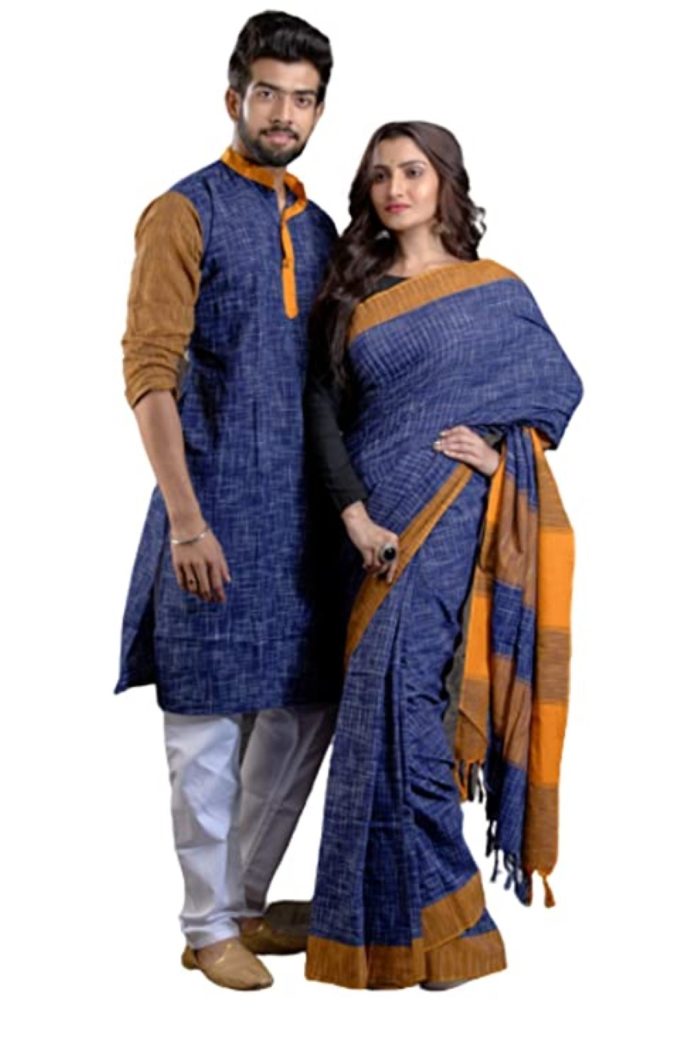 - This Product Contains 1pc saree + 1 Pc Gents' Kurta/Bengali Punjabi